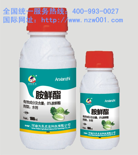 功能特点:胺鲜酯是新发现的一种高效植物生长物质,具有显著的增产、抗逆、抗病,早熟,改善品质等功效。促进光合作用,增加叶绿素,蛋白质、核酸的含量和光合效率,使作物长势好、叶色绿、产量高;调节植物体内的生长素、细胞分裂素、赤霉素、脱落酸、乙烯等的活性和合理的配比平衡,前期用可加快营养生长,中期和后期使用能增加开花、座果和加快果实的成熟;可改善作物的品质,提高产量(20-40%);并能与多种元素复配,和杀菌剂复配使用,提高杀菌效果,且具有特殊的解毒功效。