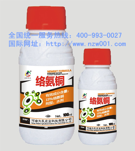 络氨铜杀菌剂特点:通过铜离子与病原菌细胞膜表面上的K+、H+等阳离子交换,使其细胞膜上的蛋白质凝固,同时部分铜离子渗透入病原菌细胞内与某些酶结合,影响其活性,从而达到杀菌目的。能防治真菌、细菌和霉菌引起的多种病害,并能促进植物根深叶茂,增加叶绿素含量,增强光合作用及抗旱能力。配方添加了钼、硼、锌等多种微量元素,可促进作物生长,有明显的增产作用。对瓜类枯萎病防效优异,可达94%以上。